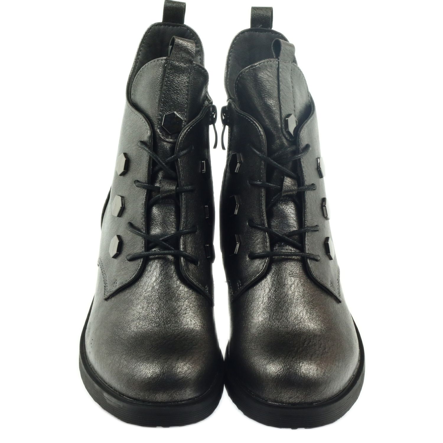 Bottines cloutées Sergio Leone. 308 est un excellent choix pour les femmes qui apprécient la combinaison de l'élégance et du confort. Fabriquées en cuir métallisé et écologique de couleur gris foncé, ces bottines avant-gardistes attirent l'attention par leur design unique. La hauteur supérieure de 11 cm les rend parfaitement ajustés à la cheville, offrant une chaleur supplémentaire grâce à l'isolation en fourrure.