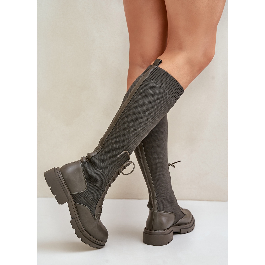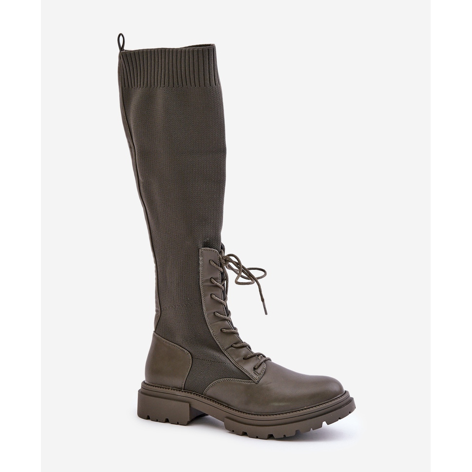 Découvrez l'élégance et le confort avec ces bottes à enfiler pour femme à tige chaussette de couleur vert foncé. Ces chaussures de mode sont une combinaison parfaite de cuir écologique et de textile, ce qui les rend non seulement élégantes, mais également respectueuses de l'environnement.