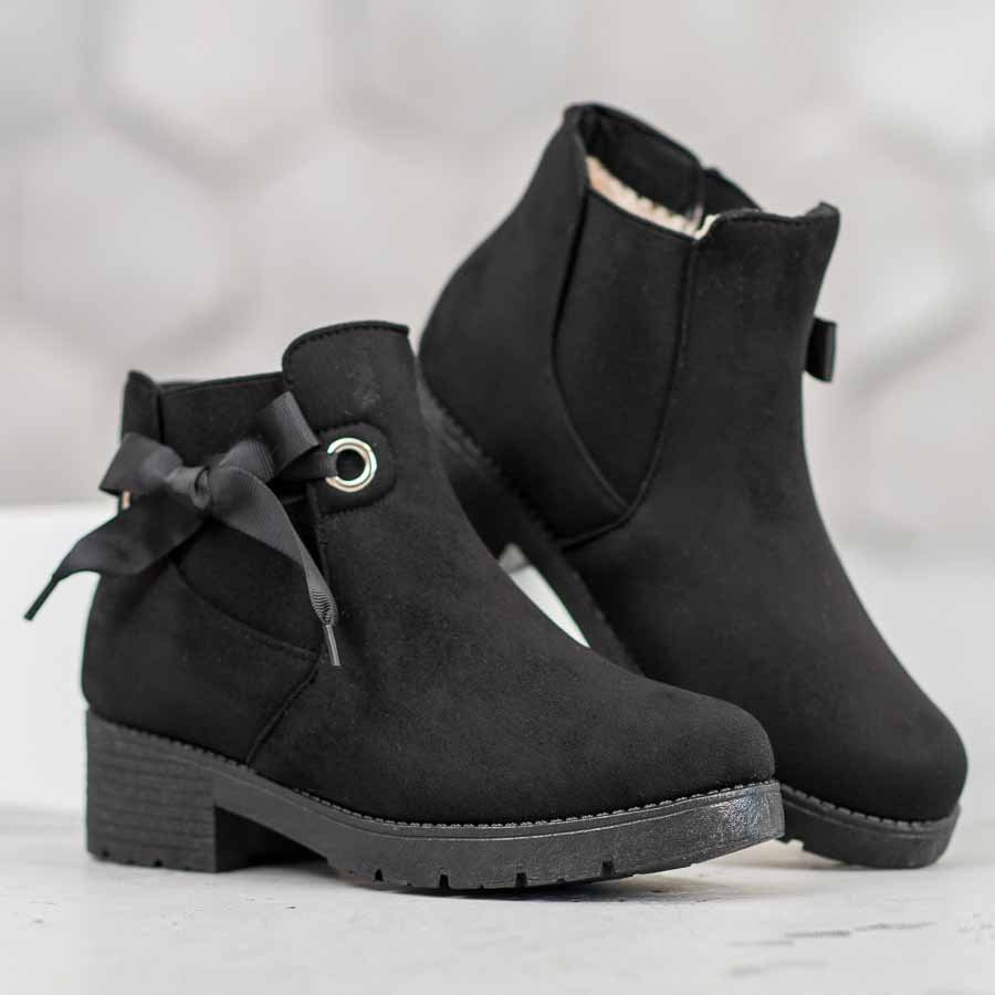 Détails: SHELOVET Bottines à enfiler avec un nœud le noir