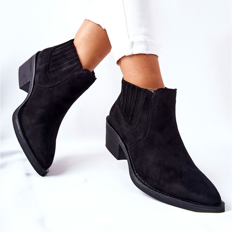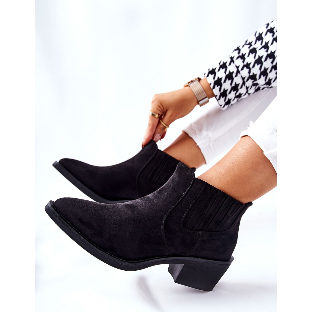 Découvrez les bottines slip-on en daim noir Assanella, qui allient confort et design tendance. Ces bottes élégantes, fabriquées en daim écologique de haute qualité, sont exceptionnellement élégantes grâce à leur bout pointu. Le montant massif assure la stabilité lors du port et l'isolation délicate sous la forme d'un couvre-chaussure les rend parfaites les jours les plus froids.
