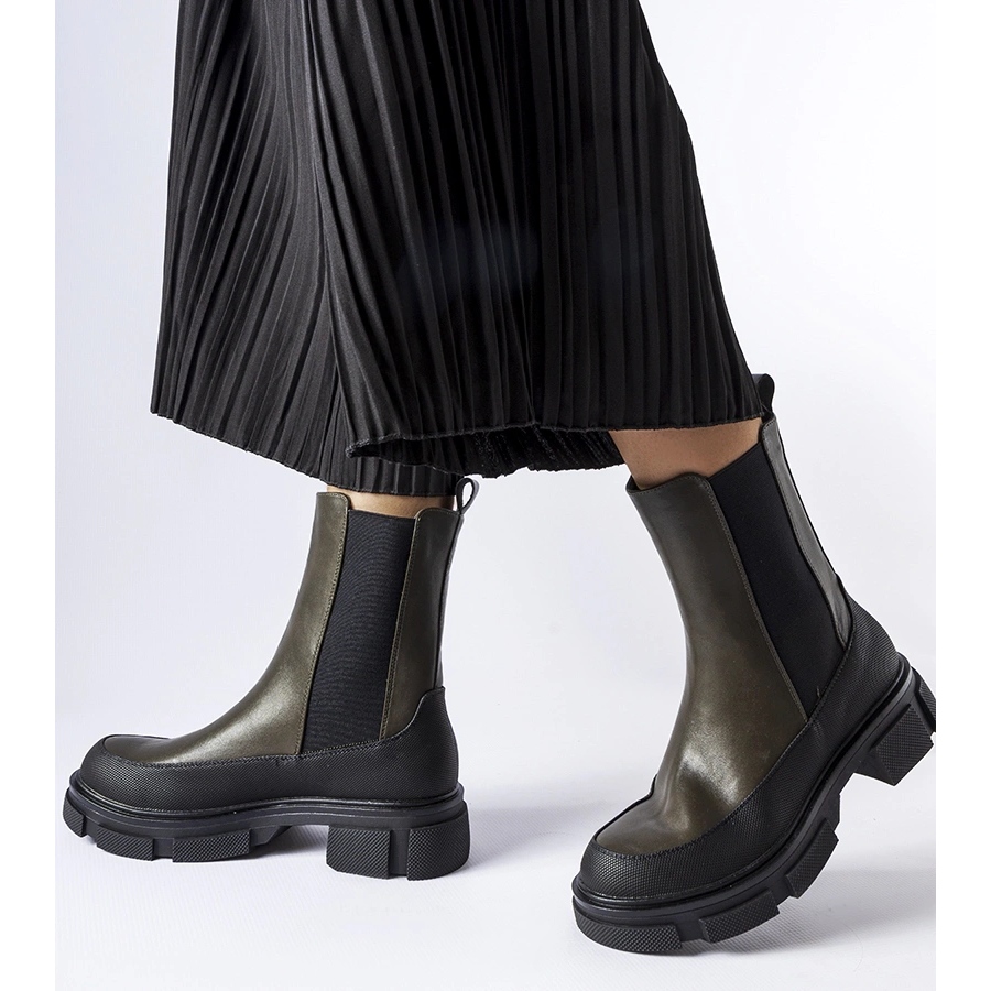 Détails: Bottines à enfiler vertes et noires par Faisal