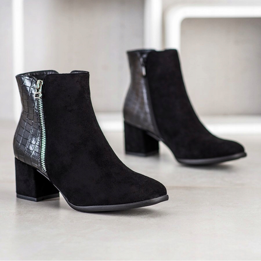 Fabriquées à partir de matériaux de la plus haute qualité, les bottes ont une tige en cuir écologique et en imitation daim, ce qui leur donne non seulement un look élégant, mais protège également efficacement du froid. La finition noire dominée par un motif animalier attire l'attention et s'inscrit dans les tendances de la mode actuelle.