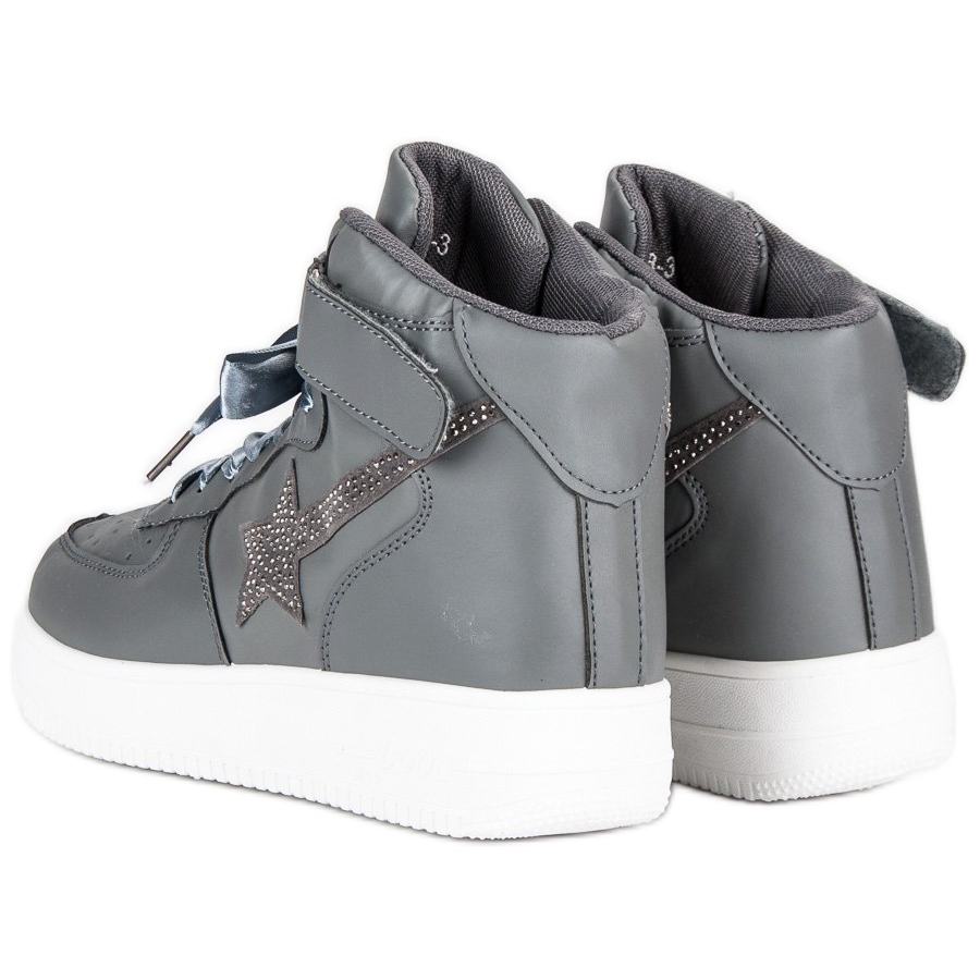 Ajoutez des bottines grises à la mode à votre collection de chaussures et profitez du style et du confort dans toutes les situations ! Ces chaussures de sport uniques pour femmes sont parfaites aussi bien pour le quotidien que pour les sorties plus exigeantes. Fabriqués en cuir écologique de haute qualité, ils sont agréables à porter toute la journée.