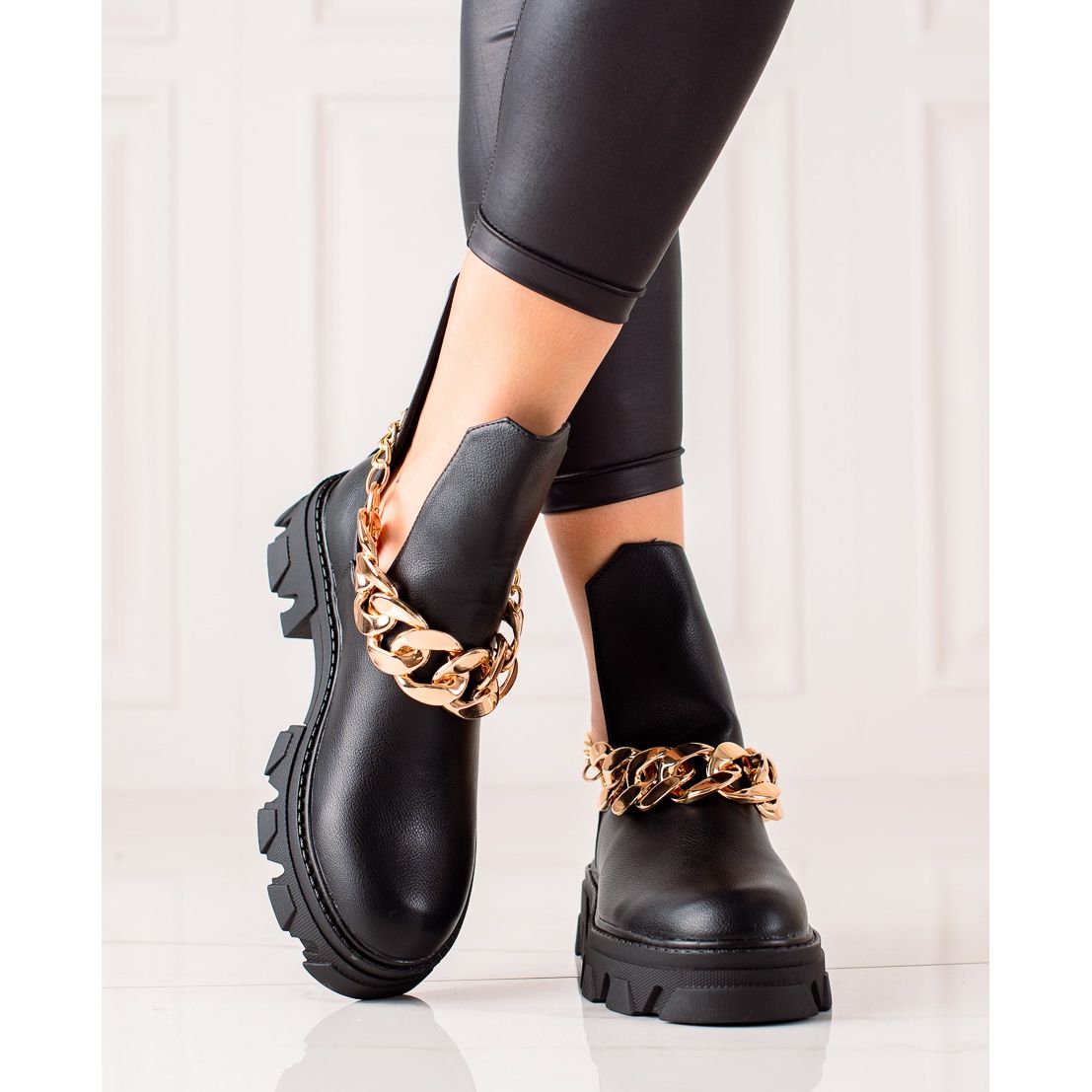Fabriquées en simili cuir de haute qualité, les bottes se caractérisent par un talon intégré et souple et un bout rond, ce qui les rend confortables à porter tout au long de la journée. La chaîne en or placée sur la tige les rend attrayants et en fait un élément pas trop trivial de tout style.