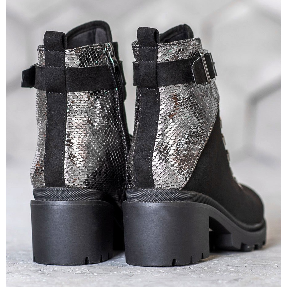 Les bottes sont équipées de plateformes de 2 cm de haut et d'un talon large et confortable de 6 cm de haut, assurant stabilité et confort tout au long de la journée. Le laçage, une fermeture éclair et une sangle décorative avec boucle ne sont pas seulement des solutions pratiques, mais aussi des détails élégants qui distinguent ces chaussures des autres.