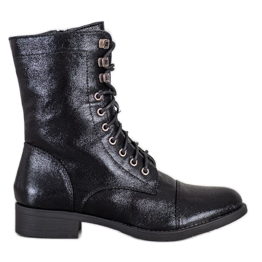 Détails: Super Mode Bottines à lacets à paillettes noir