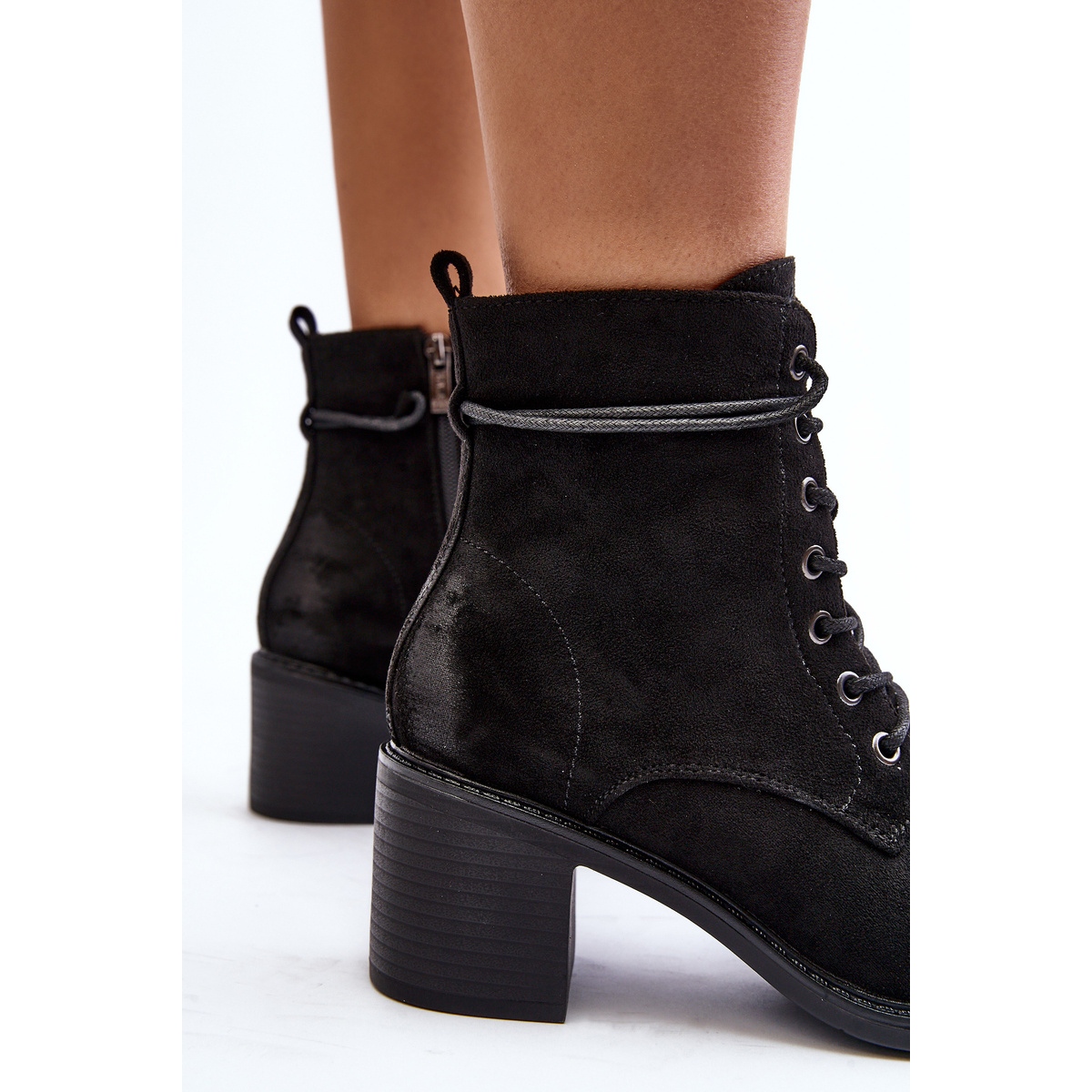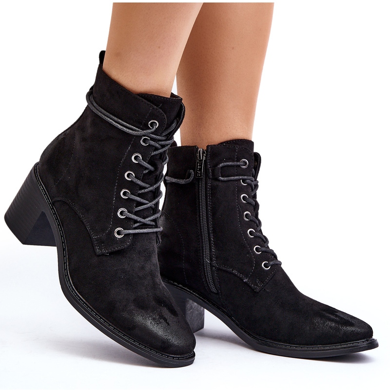 Détails: Bottines À Lacets À Talon Bas Pour Femme Noir Serellia le noir