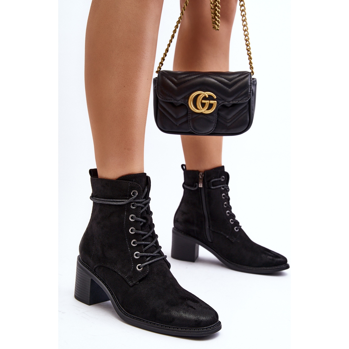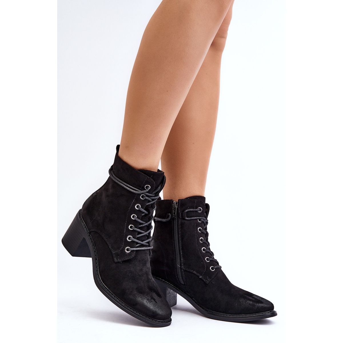 Nous vous présentons les bottes à lacets à talons bas pour femmes noires de la marque Serellia, qui, grâce à leur élégance universelle, deviendront un élément irremplaçable du style automne et hiver de chaque femme. Fabriquées en daim écologique de haute qualité, ces chaussures sont non seulement exceptionnellement élégantes, mais sont également agréables au toucher et résistantes aux dommages.