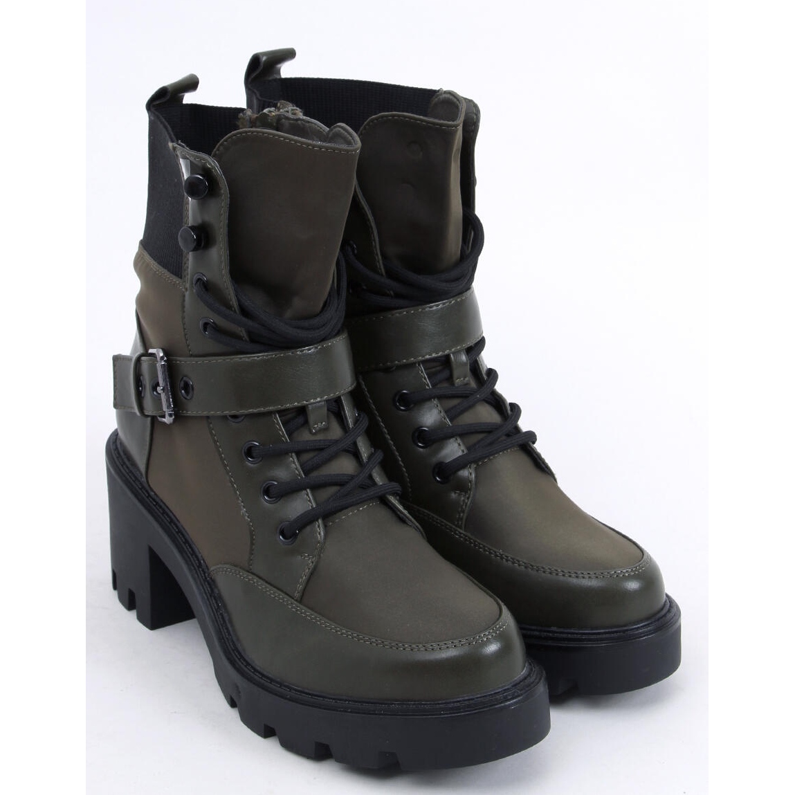 Fabriquées en cuir écologique de haute qualité et en tissu néoprène, les bottes sont une combinaison originale qui attirera certainement l'attention. Un large talon haut de 7 cm assure la stabilité et ajoute en même temps de l'élégance à n'importe quel style. Grâce à la fermeture éclair pratique et au laçage traditionnel, enfiler et enlever les chaussures devient rapide et pratique.