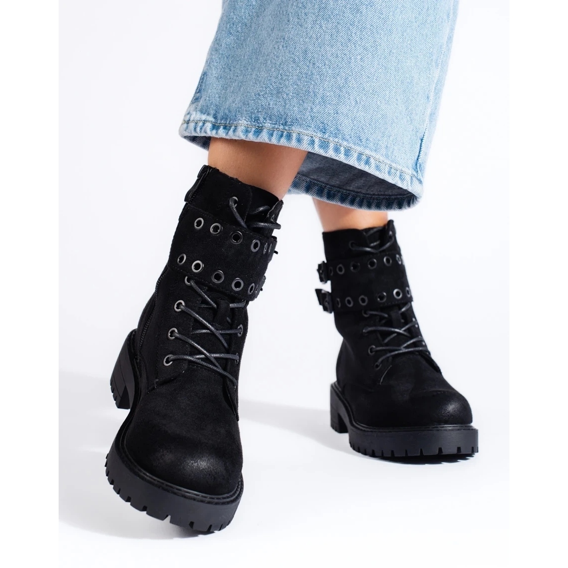 Découvrez des bottines à lacets et boucles pour femme de couleur noire classique, qui s'adaptent parfaitement au style décontracté du quotidien. Ces bottines élégantes allient design tendance et praticité que chaque femme peut apprécier.