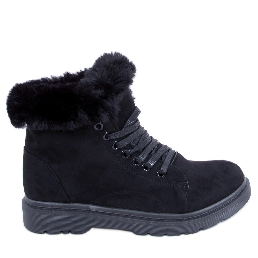 Détails: BM Bottines à lacets avec fourrure Morena Noir le noir