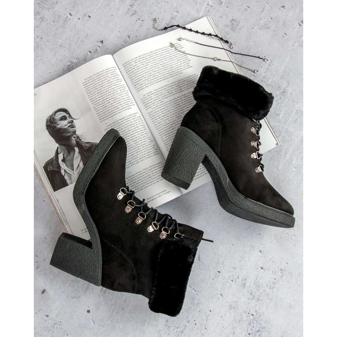 **Bottines à lacets Seastar avec fourrure noire - Choix parfait pour l'automne et l'hiver**