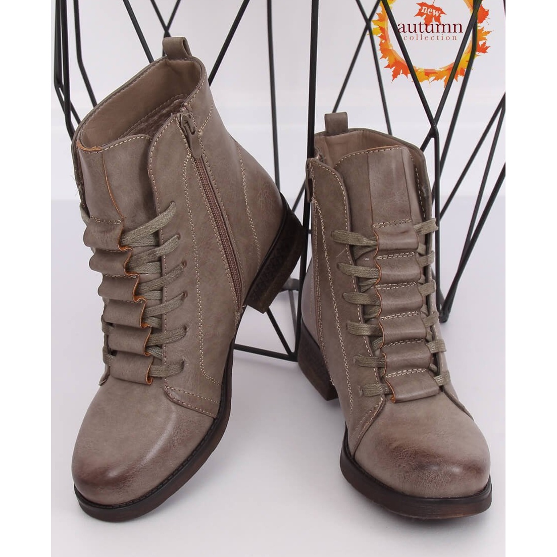Détails: Bottines à lacets beige F2801 Kaki