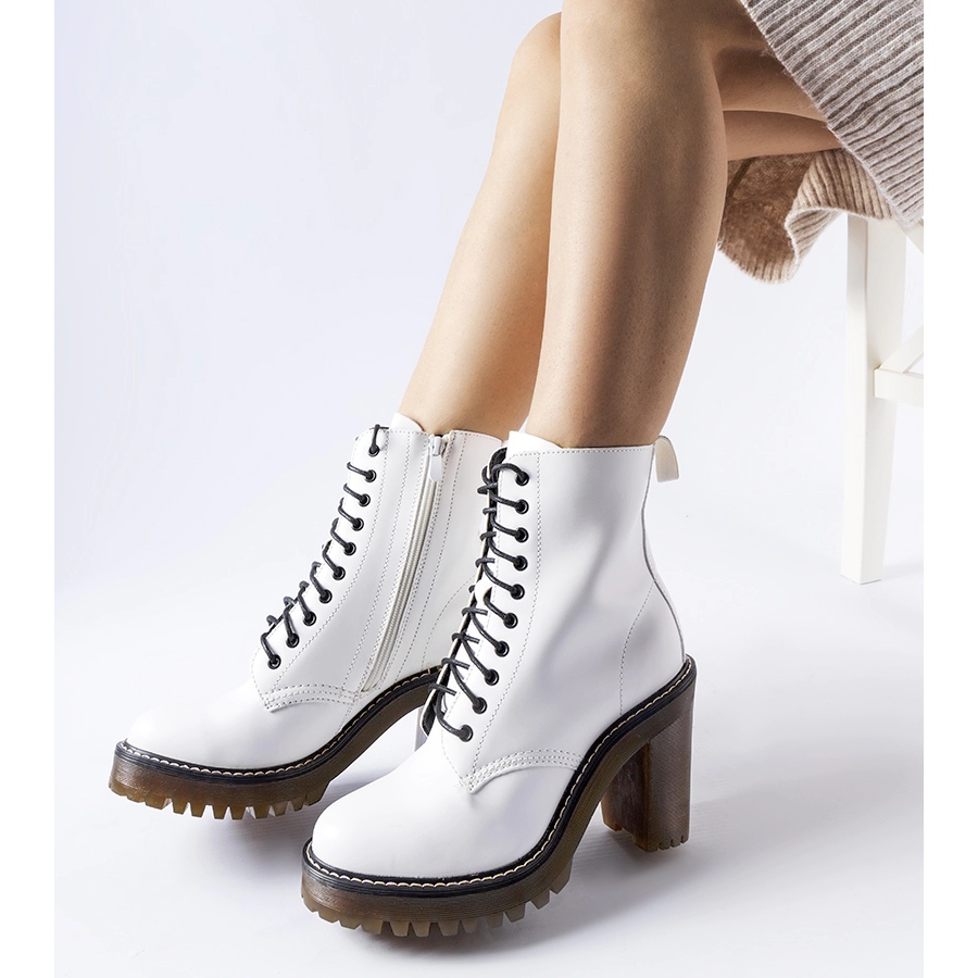 Fabriquées en cuir écologique de haute qualité, ces bottines se caractérisent par une couture soignée, qui garantit leur durabilité et leur utilisation à long terme. Grâce à sa hauteur cheville, ce modèle s'inscrit dans les tendances de la mode actuelle et s'associe aussi bien avec des jeans qu'avec des robes ou jupes aériennes. Les bottes blanches avec une semelle en caoutchouc noir constituent un contraste intéressant qui ajoute de l'originalité à n'importe quel style.