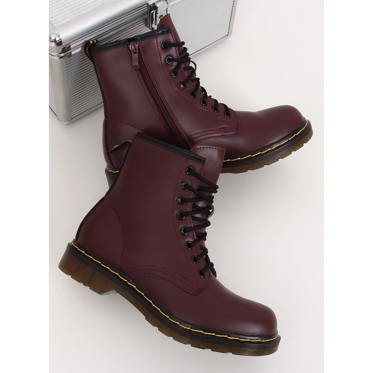 Les bottes sont entièrement lacées, ce qui assure un ajustement parfait au pied, et une fermeture éclair supplémentaire sur le côté de la tige facilite l'enfilage et le retrait. Fabriqués en cuir écologique de haute qualité, ils offrent élégance et durabilité, et la doublure en mousse assure un grand confort de port.
