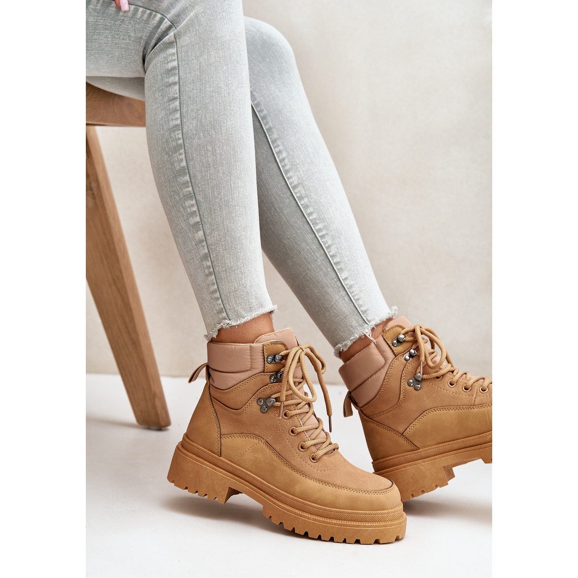 Nous vous présentons les bottes trappeuses à lacets pour femmes de couleur camel, qui sont le choix parfait pour les journées plus froides. Fabriquées en cuir écologique de haute qualité, ces bottines élégantes allient confort et design à la mode. Leurs bouts arrondis et leur talon plat de 4 cm assurent un confort lors des promenades quotidiennes et des sorties du week-end.