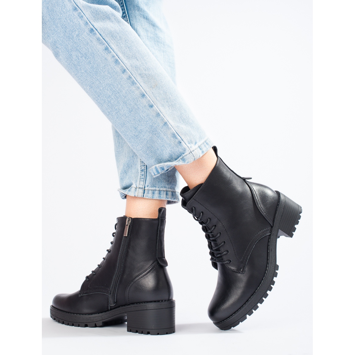 - Modèle: Bottines à lacets classiques noires pour femmes
