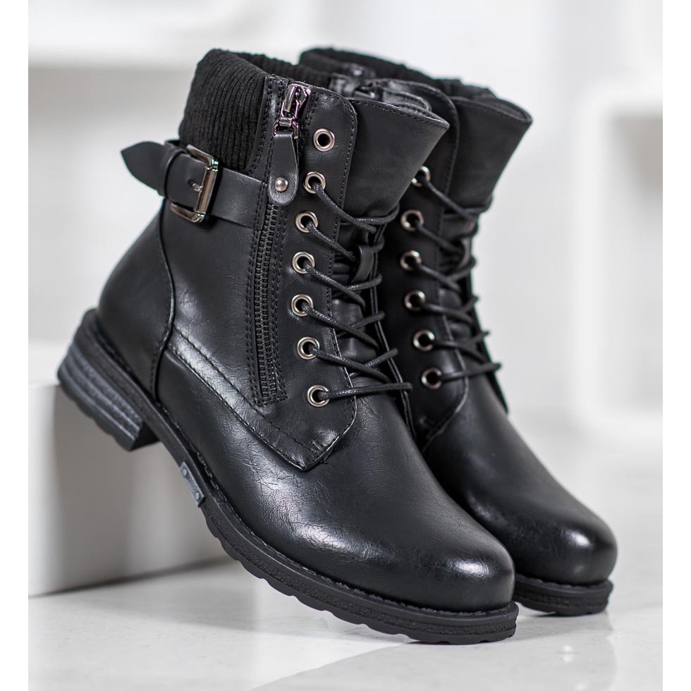 Détails: J. Star Bottines à lacets en cuir écologique noir
