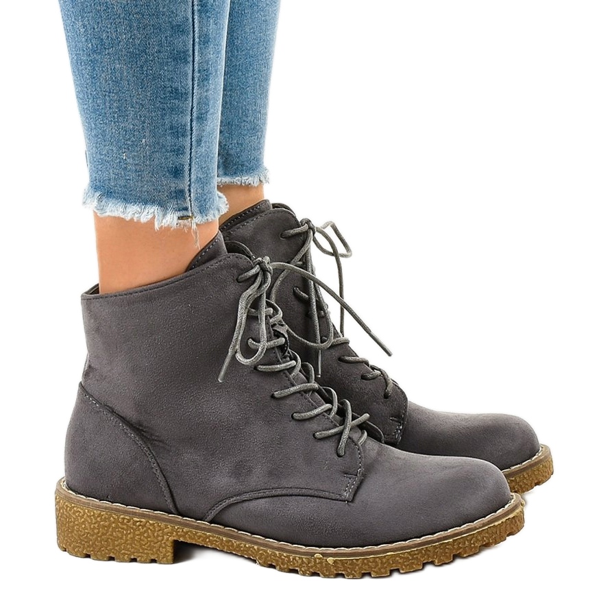 Détails: Bottines à lacets en daim gris HJ99-103
