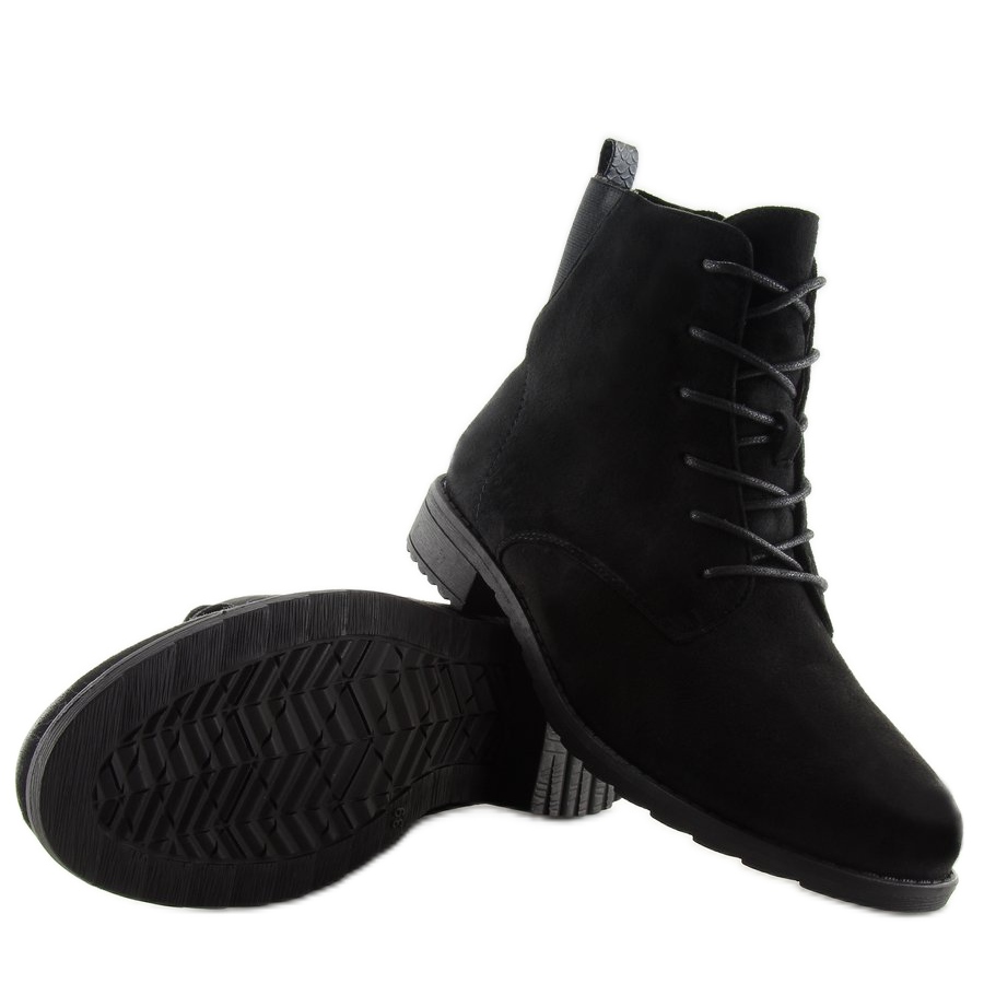 Découvrez le style et le confort avec l'une de nos bottines à lacets en daim noir. Ces bottines élégantes sont un choix idéal pour les femmes qui apprécient un look tendance et un confort de port. Fabriqués en daim écologique, ils garantissent non seulement un effet esthétique, mais aussi le respect de l'environnement.