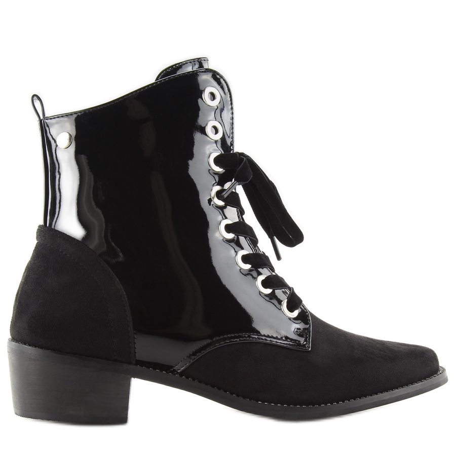 Découvrez l'élégance et le style avec des bottines à lacets noires vernies. Ces bottines pour femmes uniques, ornées de lacets en satin et de délicats strass sur l'ourlet, sont une combinaison parfaite entre modernité et style classique. Fabriqués en éco-cuir et éco-daim de haute qualité, ils offrent non seulement un look original, mais aussi un confort de port.