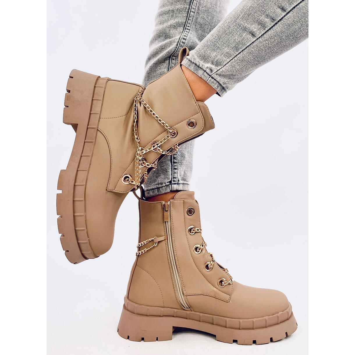 Les bottines à lacets beiges sont un choix parfait pour les femmes qui recherchent des chaussures de tous les jours à la fois accrocheuses et confortables. Ce modèle attire l'attention avec un détail unique : une chaîne en or qui remplace le laçage traditionnel. De plus, l'ensemble comprend des lacets remplaçables, ce qui permet une personnalisation encore plus grande du style.