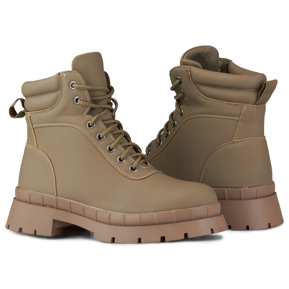 Bottes féminines élégantes et confortables idéales pour la saison automne / hiver. Fabriqué en cuir écologique, avec une isolation et une semelle solide et non glissante - ils combinent un look décontracté avec le confort de port tous les jours. La plate-forme de 3,5 cm de haut ajoute quelques centimètres sans perdre le confort, et le laçage vous permet de correspondre parfaitement.