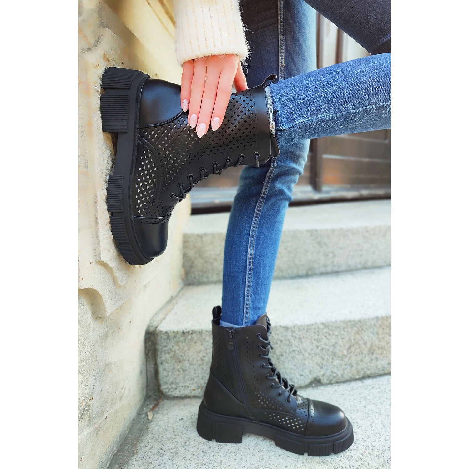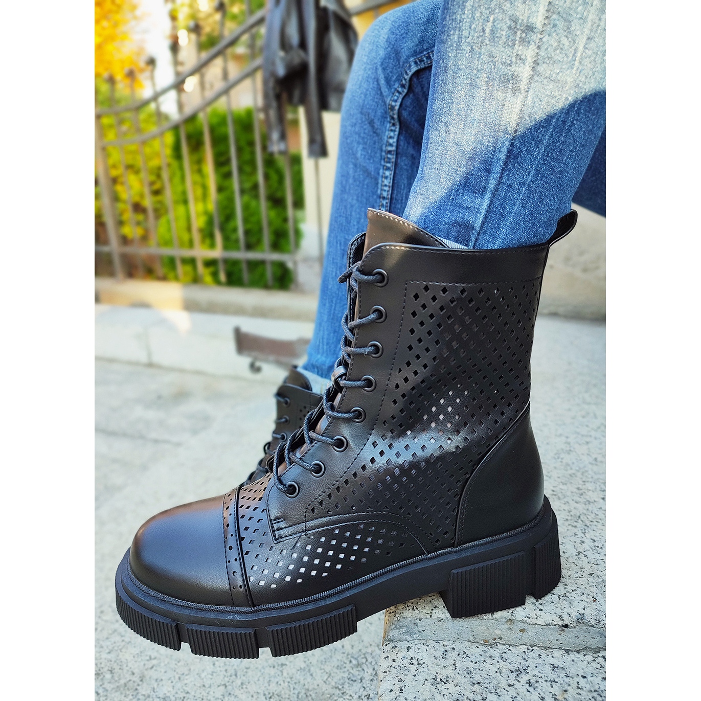 Ces bottines noires ajourées pour femme sont extrêmement stylées et élégantes. Les bottes sont un produit d'un fabricant inconnu, marqué « Une autre marque ». Elles sont destinées aux saisons printemps, été, automne et hiver, ce qui en fait des chaussures universellement applicables.