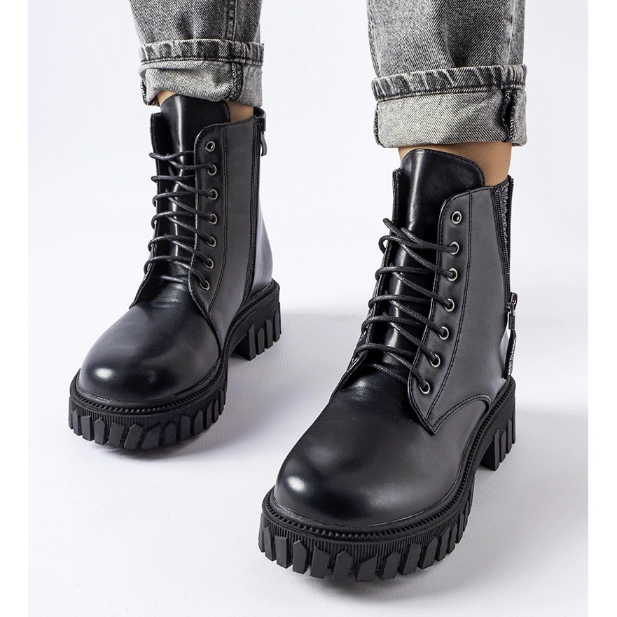 Détails: Bottines à lacets noires avec strass Latsch