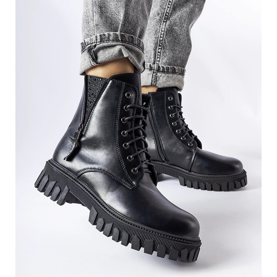 Détails: Bottines à lacets noires avec strass Latsch le noir