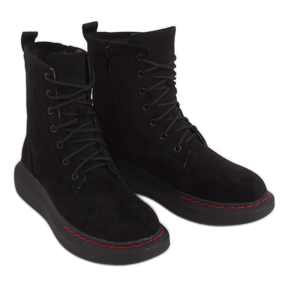 Noir NC1070 Les bottines à lacets noires sont un choix idéal pour les femmes qui apprécient le confort et un look tendance. Fabriqués en daim écologique de haute qualité, ils séduisent non seulement par leur esthétique, mais aussi par leur fonctionnalité. Isolés avec une fourrure délicate, ils offrent confort et chaleur lors des journées froides, ce qui en fait un choix parfait pour l'automne et l'hiver.
