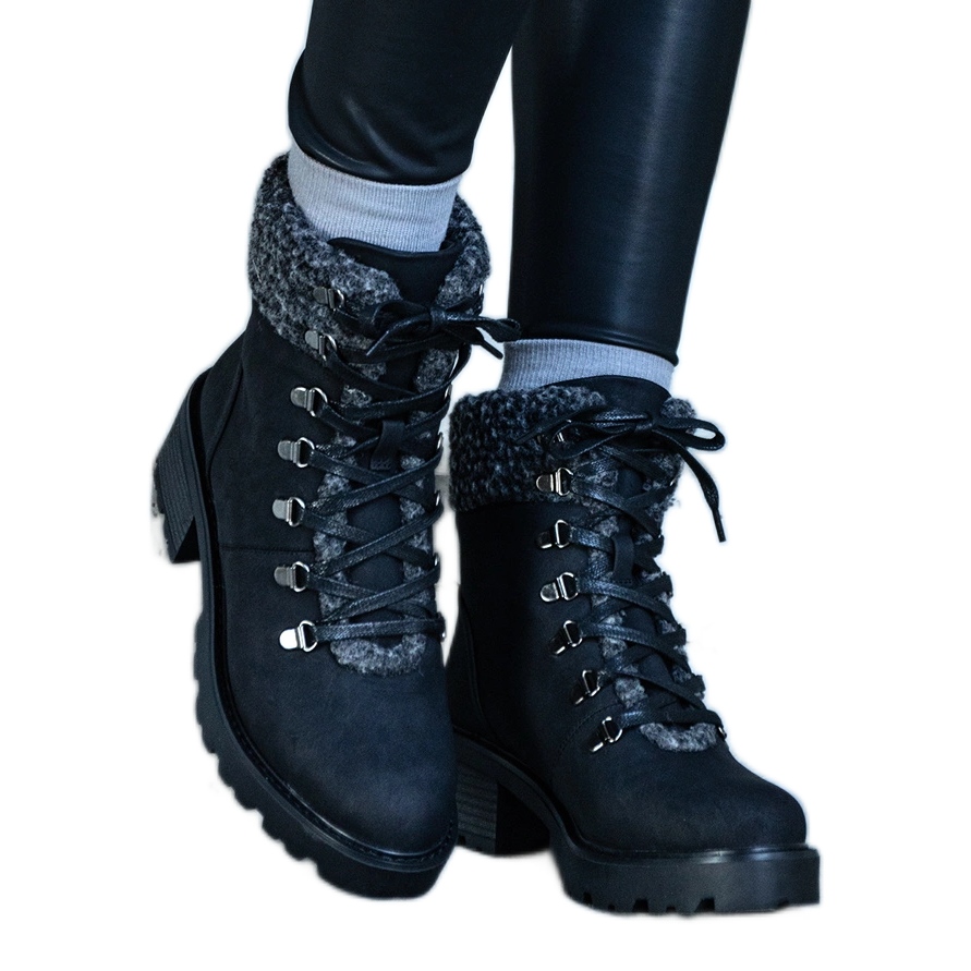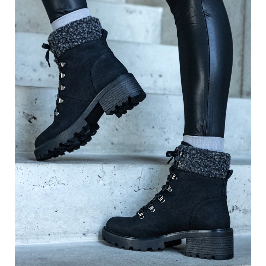 Détails: Bottines à lacets noires ornées d'un manteau en peau de mouton Moses