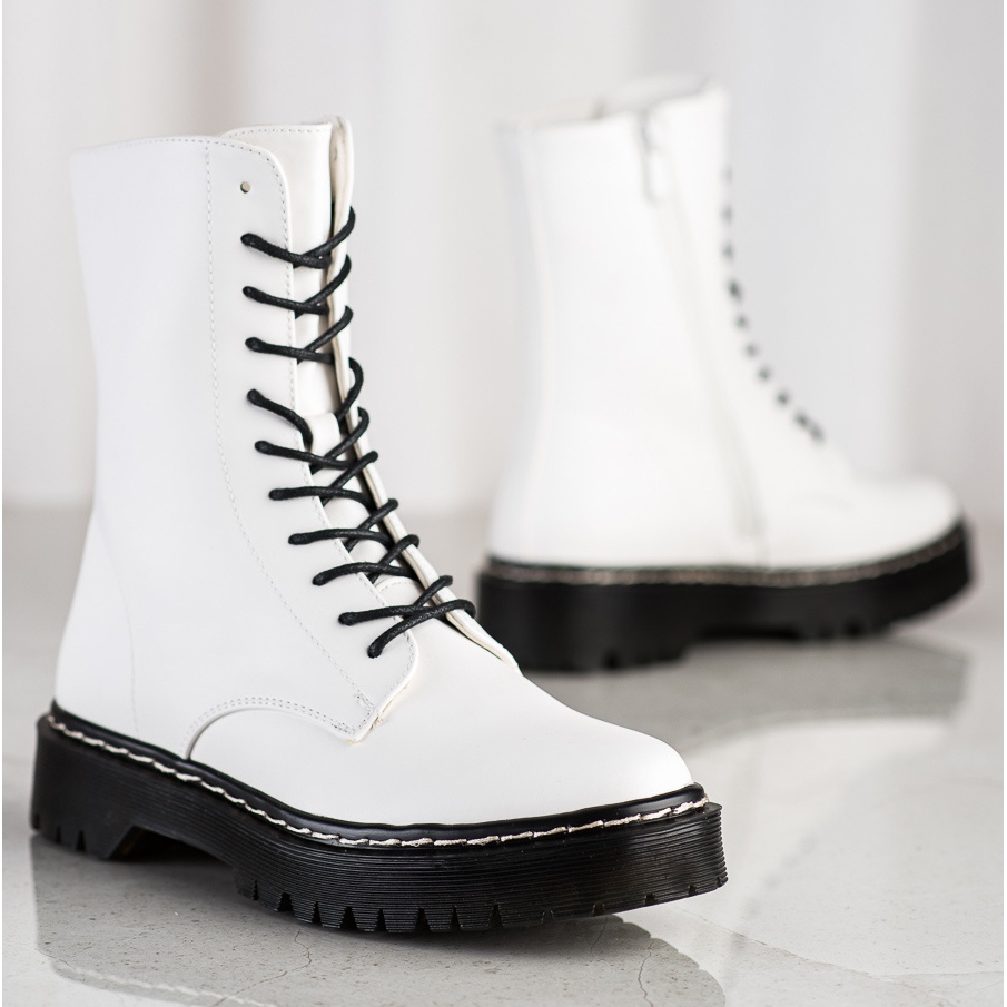 Nous vous présentons des bottes bovver à lacets blanches sur plateforme du fabricant S. BARSKI - un excellent choix pour les femmes qui apprécient la mode, le confort et le style unique. Ces chaussures uniques combinent des éléments décontractés et rock, ce qui les rend parfaites aussi bien pour un style quotidien que pour des occasions plus audacieuses.