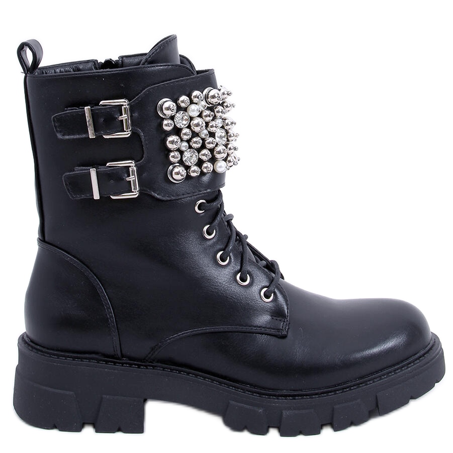 Les bottines femme PA1 sont un modèle confortable doté d'une semelle plate noire et d'un plateau de 4,5 cm de hauteur. Cela vous permet de les porter confortablement toute la journée sans vous soucier de la fatigue des pieds. Une caractéristique de ces bottes sont des décorations accrocheuses - des perles subtiles et des pierres brillantes qui attirent le regard et ajoutent une élégance exceptionnelle aux chaussures.