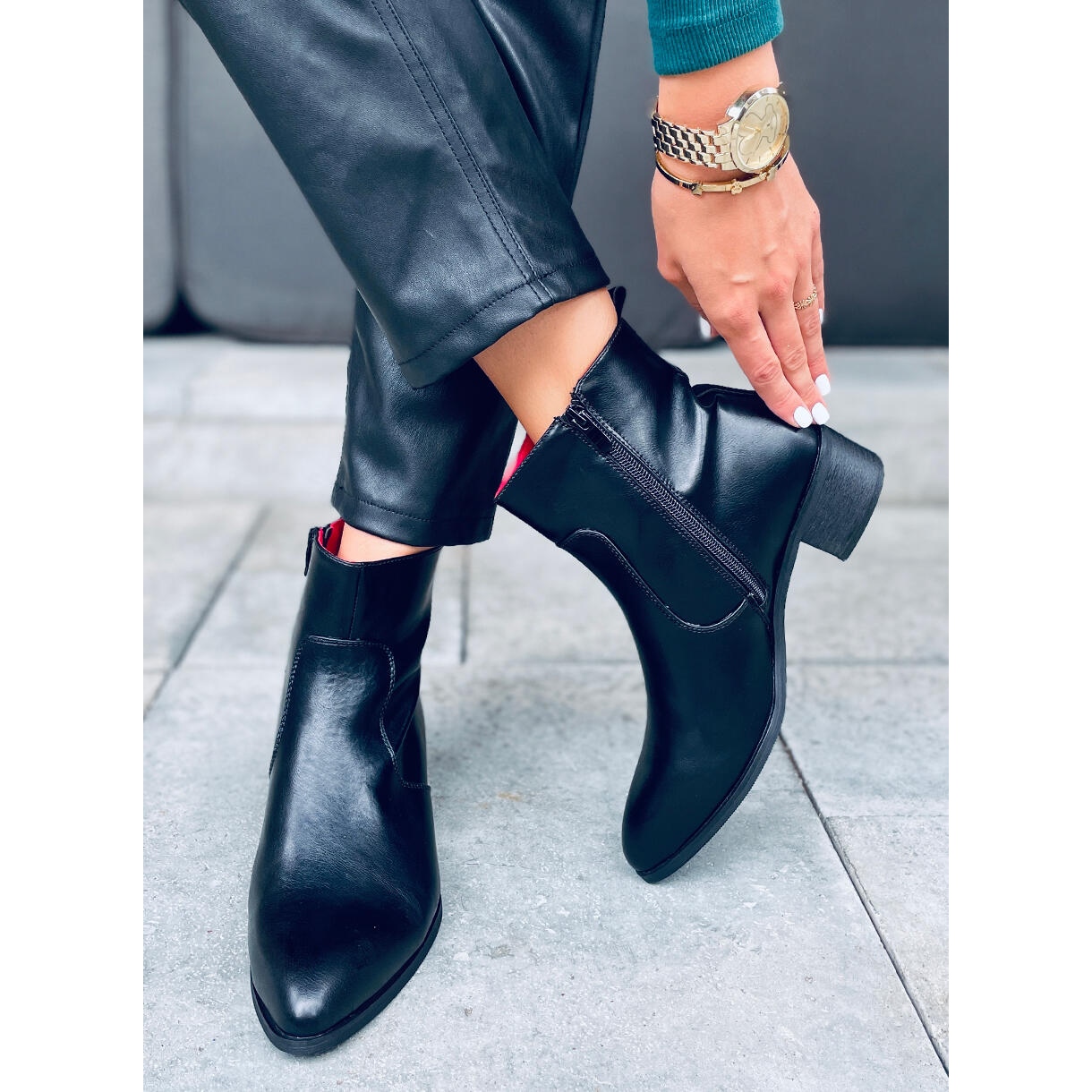Les bottines à talons bas Bellona Black sont le choix parfait pour les femmes qui apprécient une combinaison de confort et de style. Ces bottines élégantes sont fabriquées en cuir écologique de haute qualité, ce qui les rend non seulement esthétiques, mais également respectueuses de l'environnement. Elles se caractérisent par une coupe classique avec des bouts en amande, qui leur ajoutent un charme subtil.
