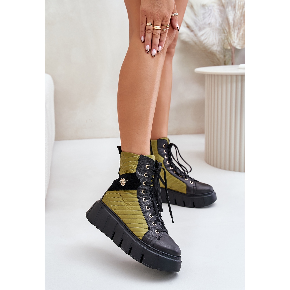 Sites sur une plate-forme solide d'une hauteur de 4,5 cm, les bottes combinent les fonctionnalités avec style à la mode. Grâce à la fermeture et au laçage de la fermeture à glissière, vous pouvez compter sur un ajustement parfait, ainsi que la facilité de mise en place. L'intérieur des chaussures isolés avec une couverture de chaussures en fait un excellent choix pour les jours plus frais, offrant un confort même pendant le port plus long.