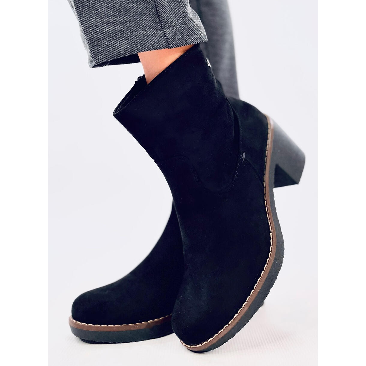 Découvrez les bottes noires Linzi uniques qui deviendront un élément irremplaçable de votre garde-robe! Ces élégants bottes pour femmes en daim écologique de haute qualité avec une coupe classique et intemporelle. Un talon de haut stable de 7 cm offre un réconfort à chaque étape, et un large post ajoute de la confiance lors du port.