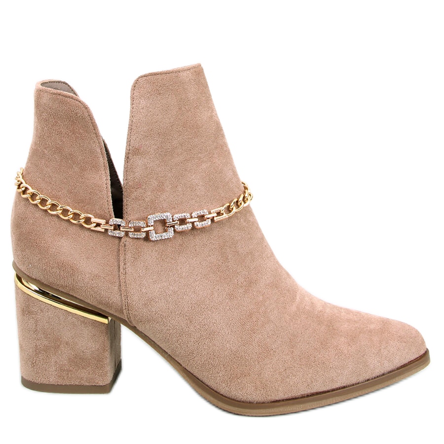 La hauteur du talon de 7,5 cm ajoute élégance et féminité, et le bloc large assure la stabilité lors de la marche. L'utilisation de daim écologique comme matériau extérieur leur confère un caractère subtil et leur surface lisse les rend assortis à de nombreux styles. Des découpes sur les côtés et une chaîne accrocheuse ornée de pierres brillantes attirent l'attention et confèrent aux bottes un charme unique.