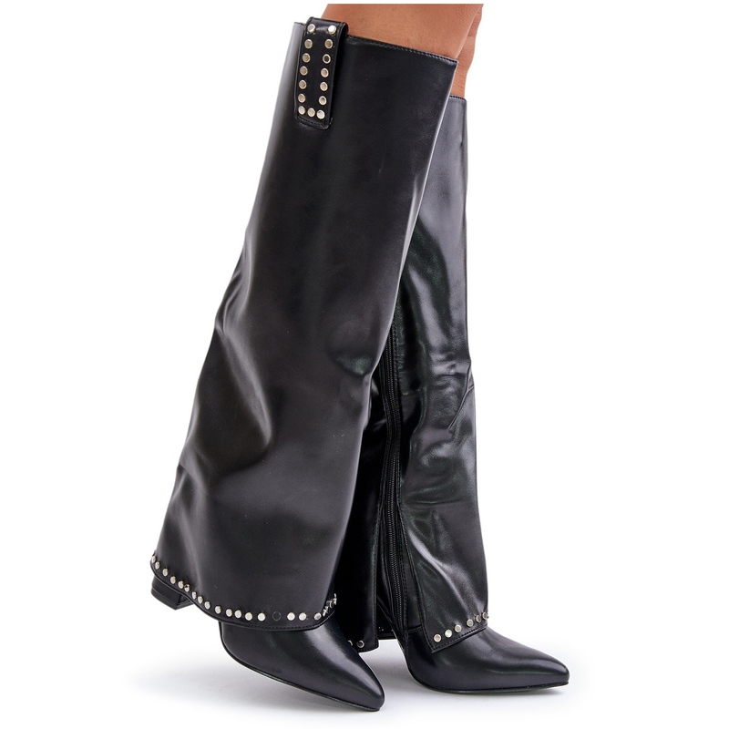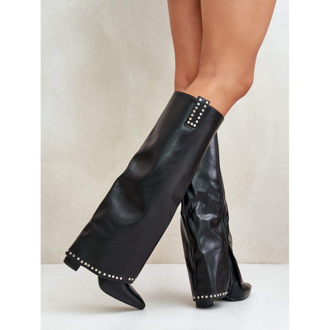 Les bottes pour femmes à talon retroussé, noires, sont un choix élégant pour toutes les femmes qui souhaitent allier style et confort. Fabriquées en cuir écologique de haute qualité, ces bottes se caractérisent par une tige ample qui se transforme efficacement en un talon bloc stable. Grâce aux bouts pointus, ce modèle acquiert un look extrêmement raffiné, mettant parfaitement en valeur chaque silhouette.