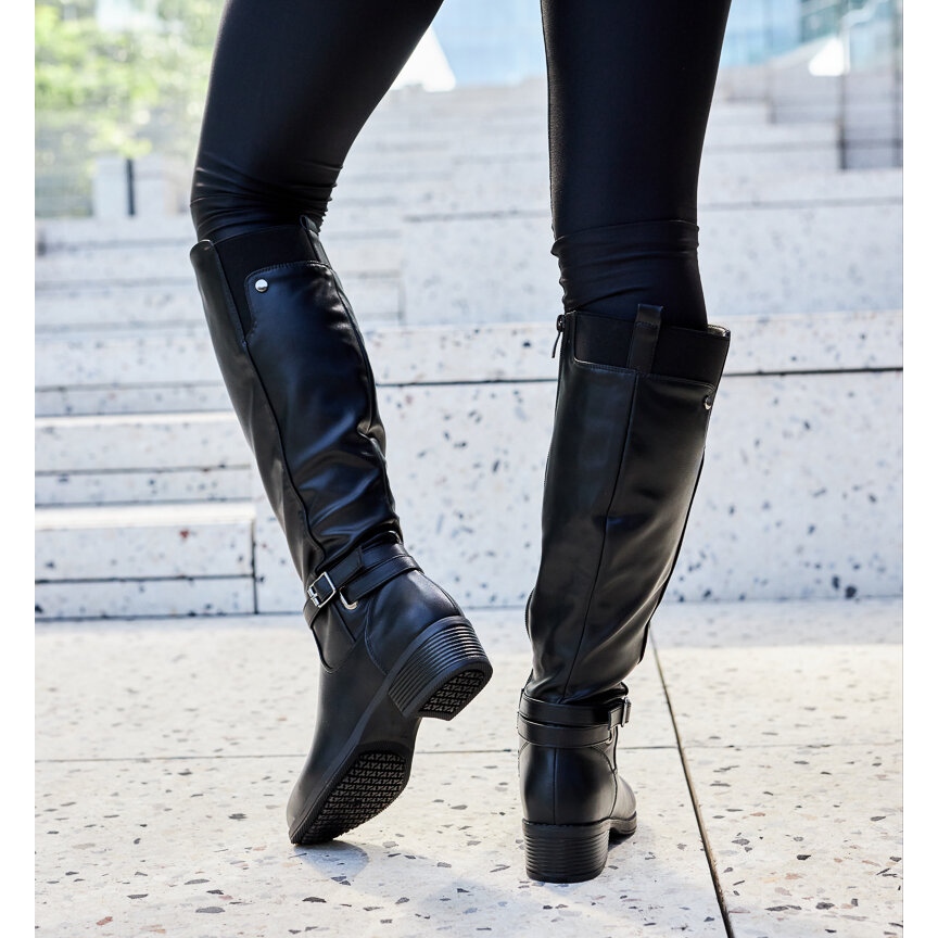 Les bottes font partie de la collection Inna Marka, le modèle est HX23003-1. La couleur de la chaussure est PU noir, c'est-à-dire noire, comme la semelle, en plastique. L'insert est en tissu. Les chaussures sont livrées dans l'emballage d'origine du fabricant. La tige mesure 18 cm de large et les bottes arrivent à mi-mollet.