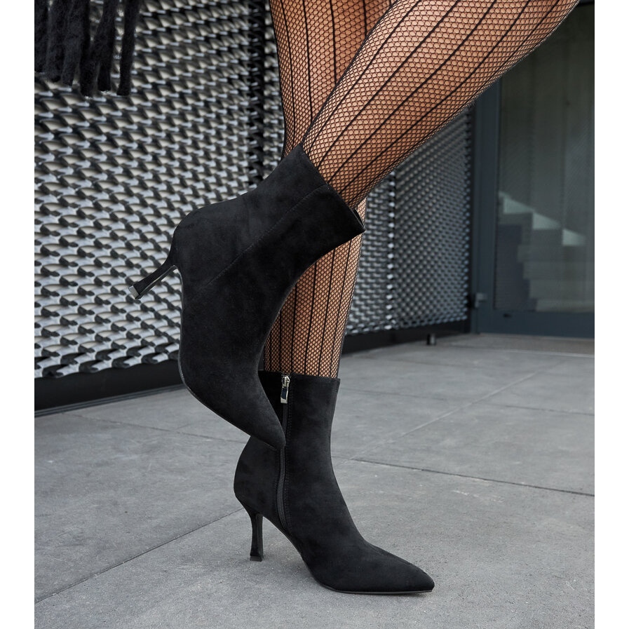 Les bottines noires à talons bas Guimond sont un choix parfait pour toutes les femmes qui apprécient le confort et le style. Ces élégantes bottines, fabriquées en cuir suédé écologique de haute qualité, ont un design incroyablement confortable qui vous permet de les porter toute la journée sans ressentir aucune gêne. Grâce à la fermeture éclair pratique, enfiler et enlever les chaussures devient rapide et facile.