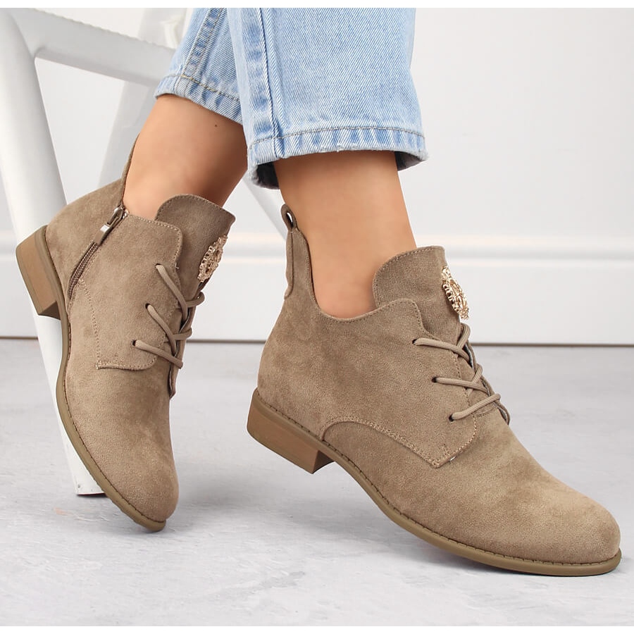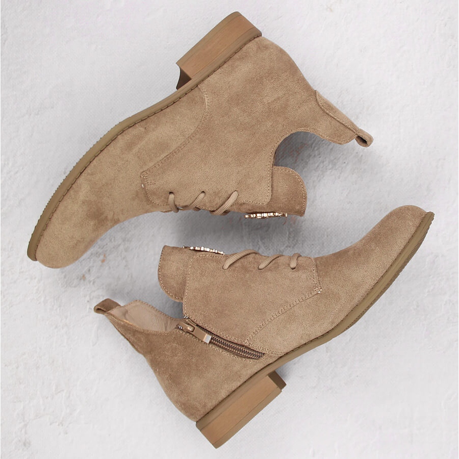 Détails: Bottines à talons bas pour femme en daim beige Jezzi ASA142-54