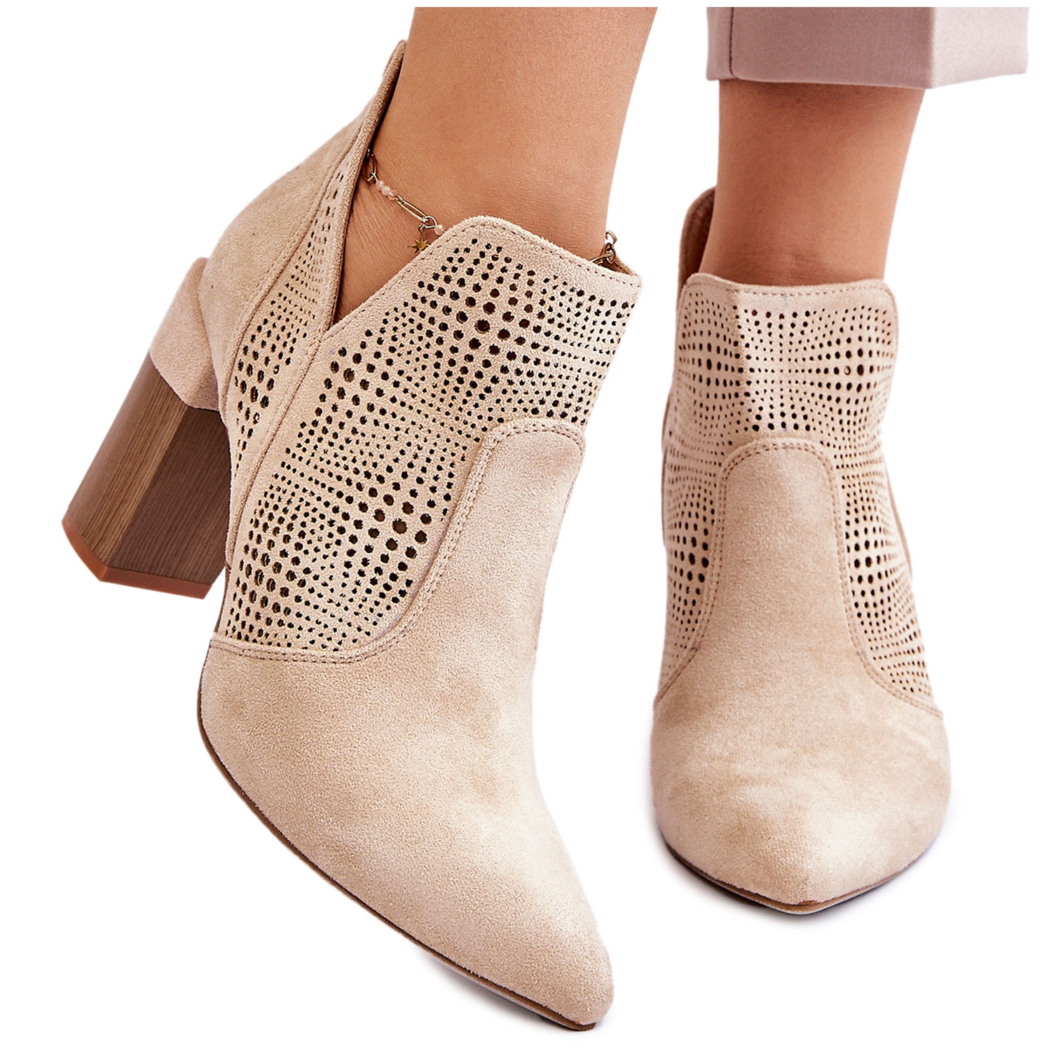 PM1 PM1 Bottines à Talons Daim Ajouré Beige Clair Leanna brun