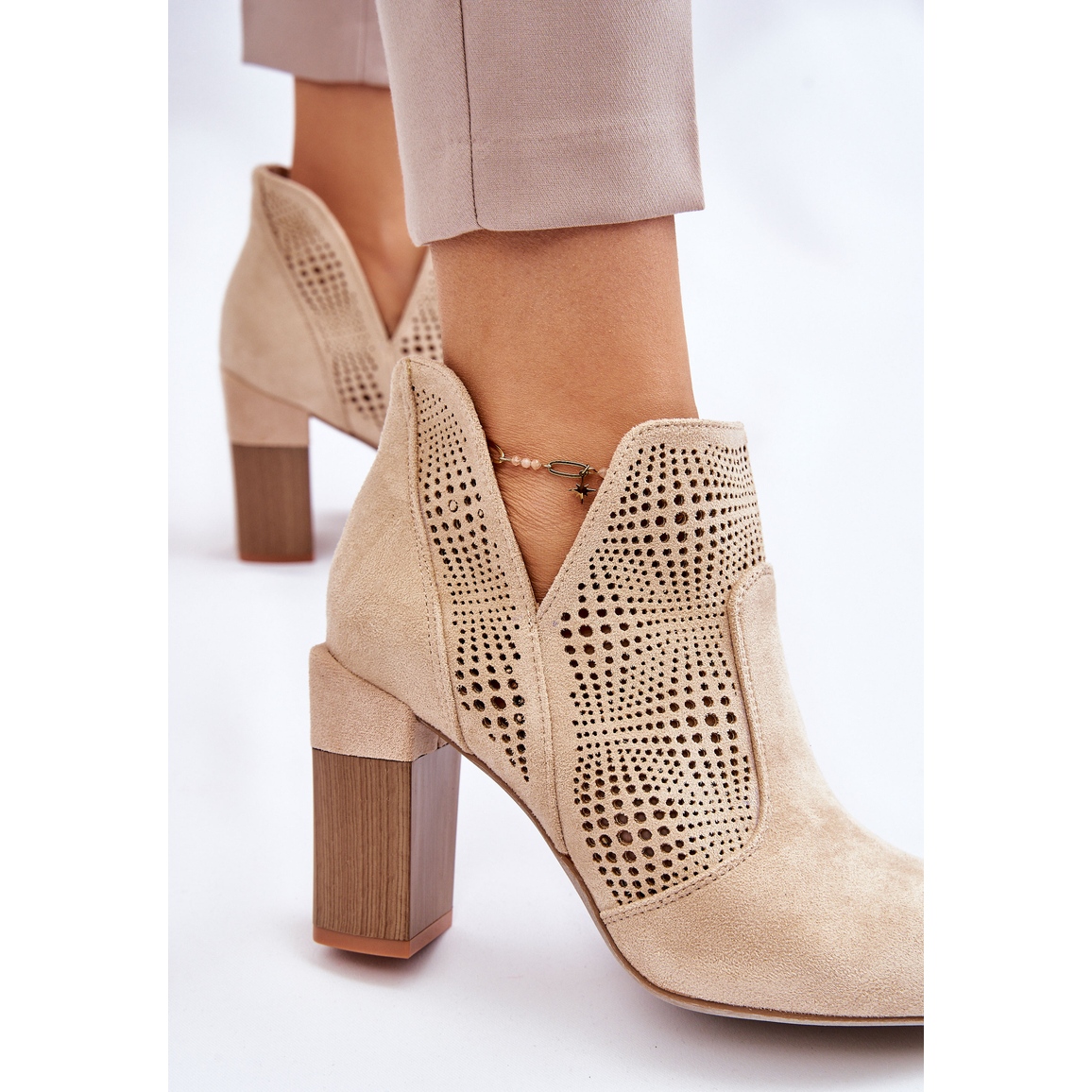 Détails: PM1 Bottines à Talons Daim Ajouré Beige Clair Leanna brun