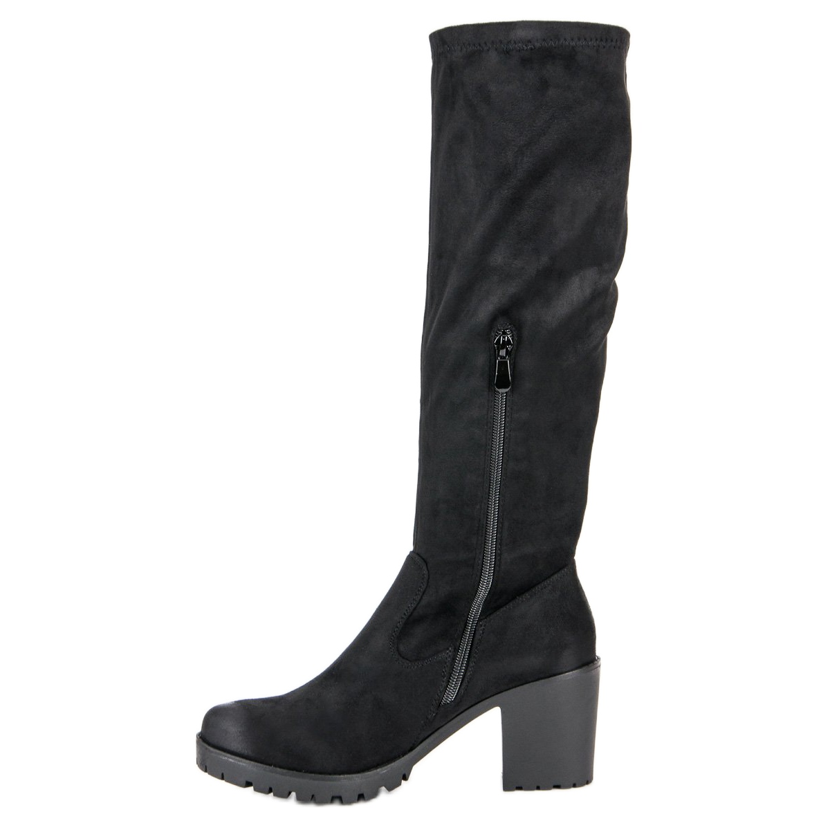 Les bottes à talons hauts en daim VINCEZA noires sont le choix parfait pour une femme élégante qui souhaite allier confort et look tendance. Fabriquées en daim écologique de haute qualité, les bottes se distinguent par de belles coutures et une ligne élégante. Un talon haut de 7,5 cm associé à une semelle crantée assure stabilité et confort lors des promenades quotidiennes ou des sorties en soirée.