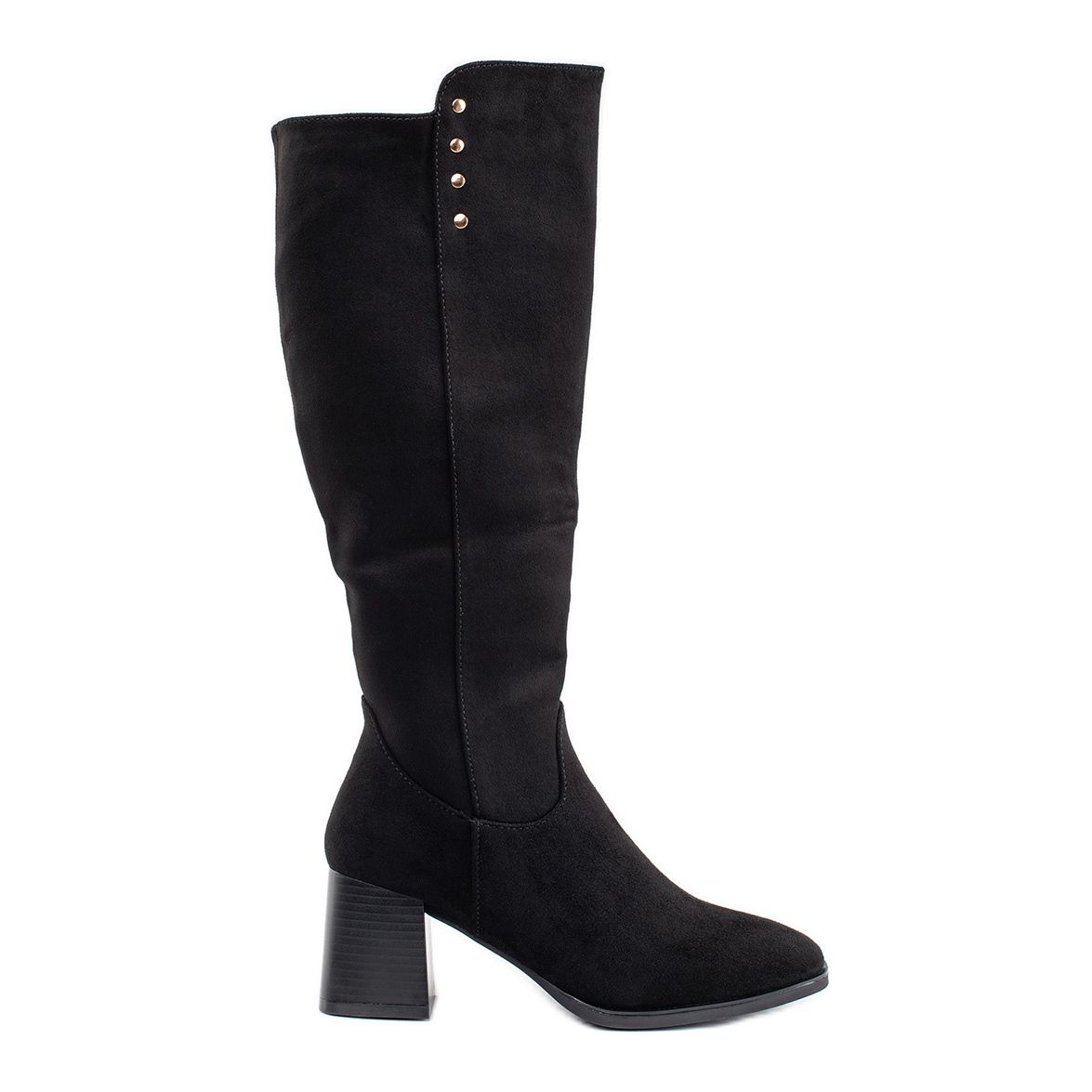 Non seulement beau, mais aussi pratique - l'insert de tissu intérieur rend chaque étape douce et confortable. Ces bottes noires seront un excellent choix pour rencontrer des amis et des tâches quotidiennes. Chaque femme qui valorise la mode et le confort devrait les avoir dans sa collection.