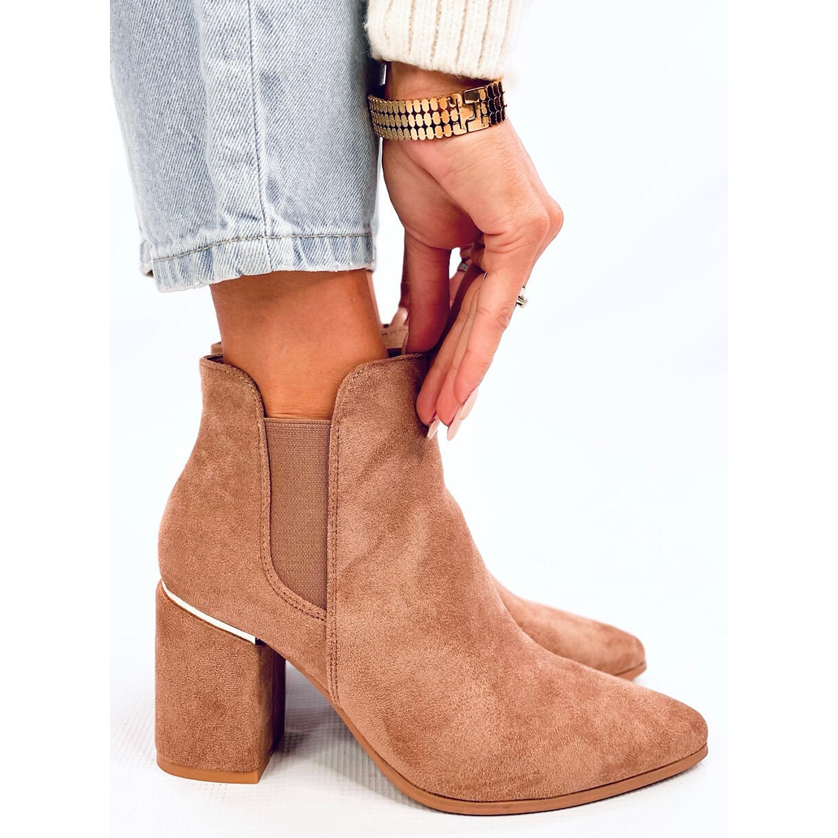 Inna marka Bottines à talons et bout en amande Croix Kaki beige