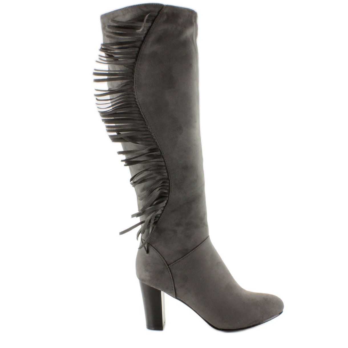 Les bottes à talons hauts à franges H615 dans une nuance de gris unique sont le choix parfait pour les femmes qui apprécient le style et le confort. Ces chaussures élégantes sont fabriquées en daim écologique de haute qualité, qui contribue non seulement à la protection de l'environnement, mais assure également douceur et confort de port.