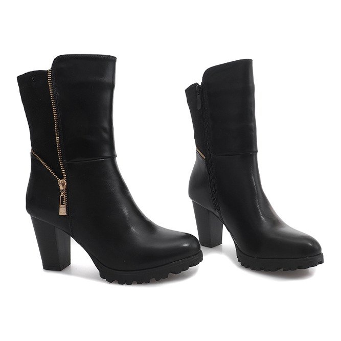 Découvrez l'élégance et le confort avec la botte à talon haut FR59 d'une couleur noire classique. Ces chaussures élégantes pour femmes d'une marque renommée sont un choix parfait pour les journées plus froides, grâce à l'isolation qui vous gardera au chaud et à l'aise. La hauteur supérieure d'environ 17 cm s'adaptera parfaitement à votre jambe, et le talon unique de 8,5 cm ajoute de la classe et allonge optiquement la silhouette.