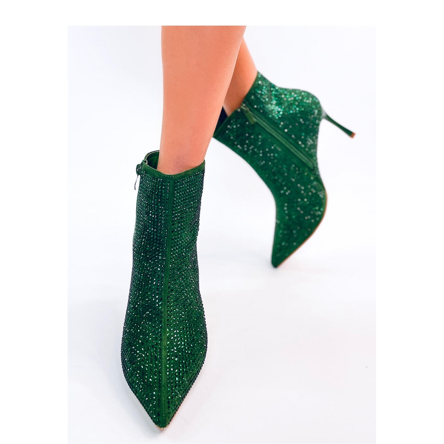 Découvrez l'élégance et le charme des bottines à talons hauts ornées de cristaux Green d'un vert vif. Ces bottines pour femmes uniques avec une hauteur de talon de 9 cm sont la combinaison parfaite entre style classique et moderne. Leur design galbé avec des orteils légèrement effilés donne aux jambes un aspect plus mince, et l'ajout de cristaux brillants attirera certainement l'attention et ajoutera un éclat unique à chaque style.